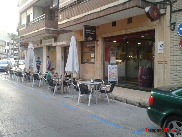 Se traspasa bar–restaurante frente Ayuntamiento, por motivos familiares, en funcionamiento, clientela fija, totalmente equipado, aire acondicionado, salida humos, 129 m2 de salón y 87m2 de almacén, terraza 8 mesas, 2 baños completos y 1 privado. Precio negociable.